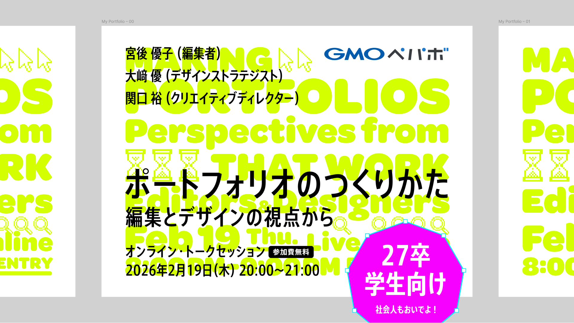| イベント名 | ポートフォリオのつくりかた ─ 編集とデザインの視点から presented by GMOペパボ |